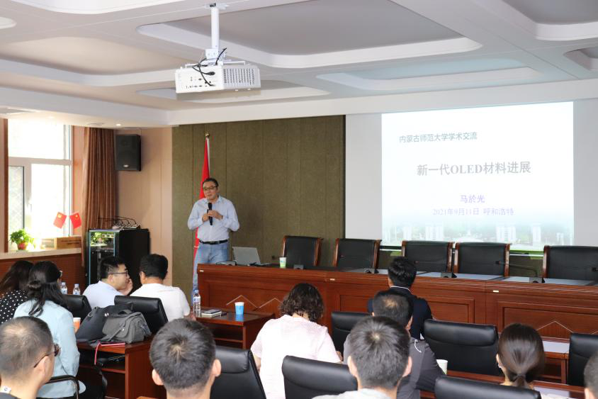 师生做了题为“新一代OLED材料进展”的学术讲座,讲座中马教授介绍了新一代OLED材料的研究进展,介绍了自主研发的三个材料体系,例如杂化激发态材料、热激子材料及双线态自由基发光材料的,以及该类OLED材料的研发在理论方面重新催热关于自旋统计的探讨,在应用方面有望发展成为低成本、高性能的新一代OLED材料,指出该类材料的发光机制、原理以及进一步材料设计思路还有待探讨和明确。