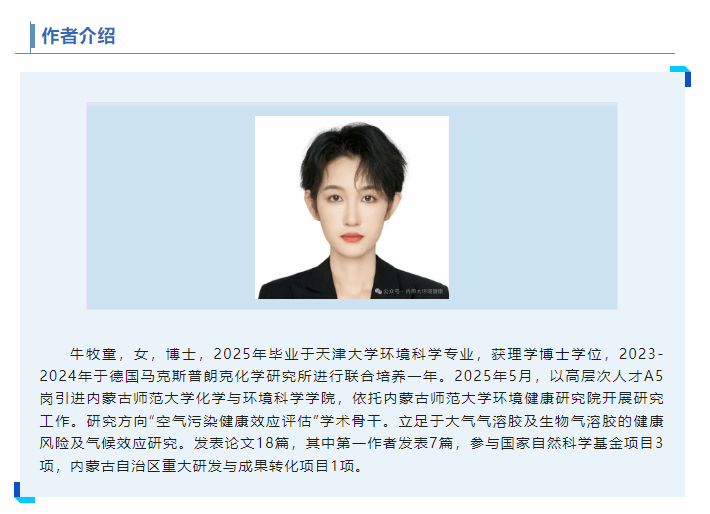 论文的第一作者为内蒙古师范大学环境健康研究院牛牧童研究员,北京大学要茂盛教授、研究院院长为通讯作者。该研究得到内蒙古自治区重点研发与成果转化计划(2025KJHZ0017)、国家自然科学基金创新研究群体项目(22221004)以及广州国家实验室(EKPG21-02)的资助。