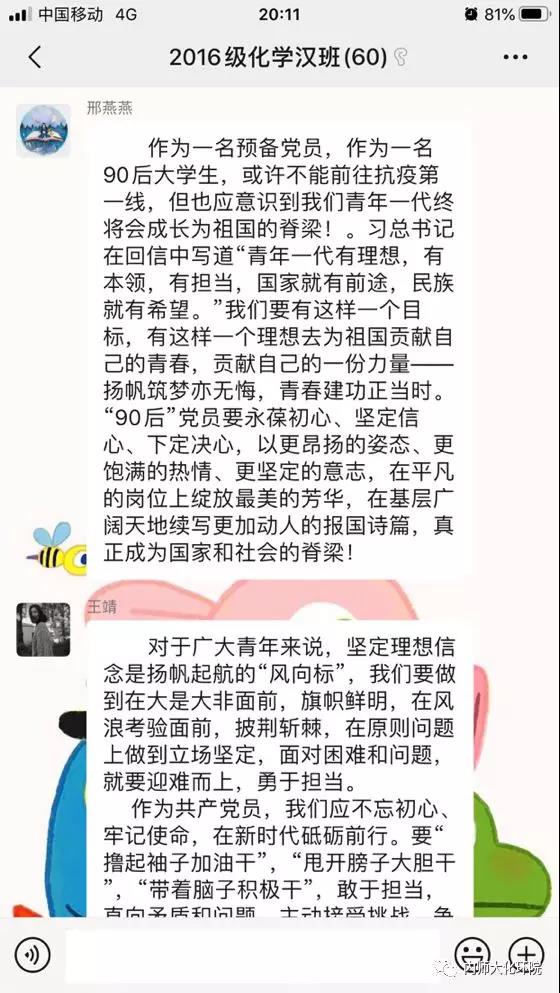 在此次疫情的斗争中,以“90后”为代表的青年一代不畏艰险、甘于奉献,展现了新时代中国青年的精神面貌。3月15日,习近平总书记给北京大学援鄂医疗队全体“90后”党员的回信中,更是表达了对“90后”的肯定,这让我们青年一代备受鼓舞。