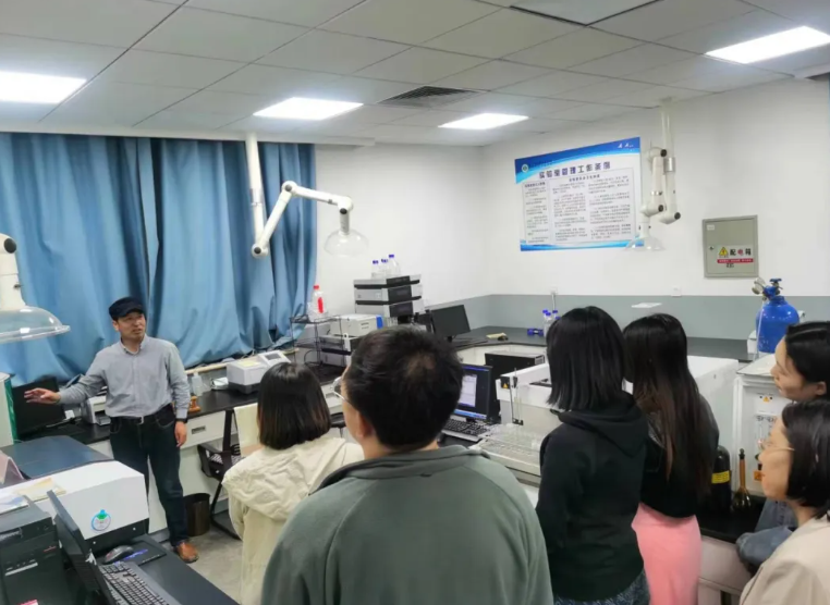 各实验室负责老师和研究生向老师们重点展示了大型仪器设备的功能,展现了现代环境化学分析的便捷、智能与高效。萨嘎拉老师就实验室安全与规范管理进行了讲解。刘子忠、徐爱菊、王奖、王海燕等老师陪同参观。