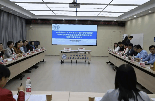 的基本情况,回顾了各自的办学成就及“以高质量党建引领事业高质量发展”的典型做法。同时,双方分享了特色党支部的建设经验,包括全国样板研究生党支部、炼铁新技术合理化梯队党支部以及全国样板党支部、环境化学党支部。此外,还围绕专业硕士培养模式、专业博士点建设等学科建设情况展开交流学习,并聚焦生态能源领域,达成共筑校际科研合作桥梁的共识。