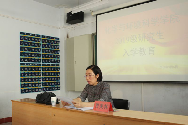 院长贾美林教授致欢迎词,表达了对2019级研究生的热烈欢迎。
