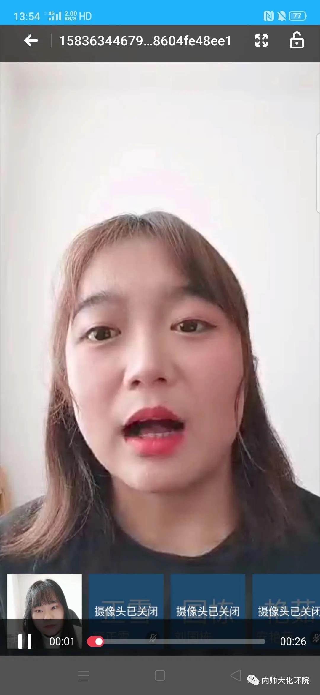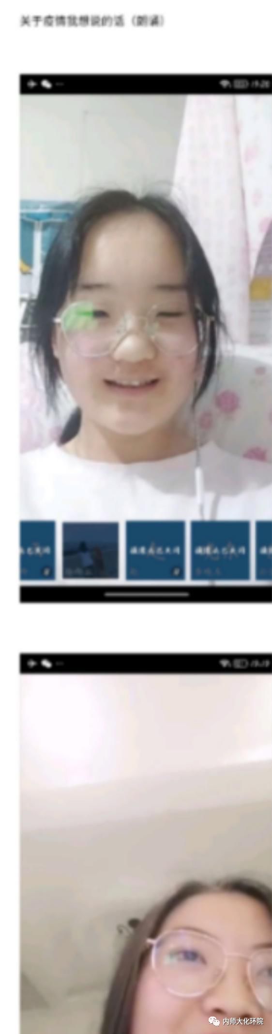 许婷壹同学给大家分享了她拍的抖音小视频。她用视频和声音的方式,给武汉和战疫最前线的白衣天使们送上最真挚的祝福。
