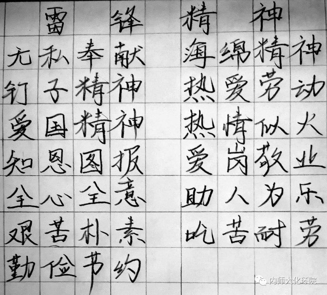 在这场“战疫”中,一个又一个“雷锋”接连出现,他们为了全国人民的健康,舍小家为大家,毅然决然地前往“战疫”一线。安艳茹和苏知雨两位同学用苍劲有力的书法歌颂了此次疫情中的雷锋精神。