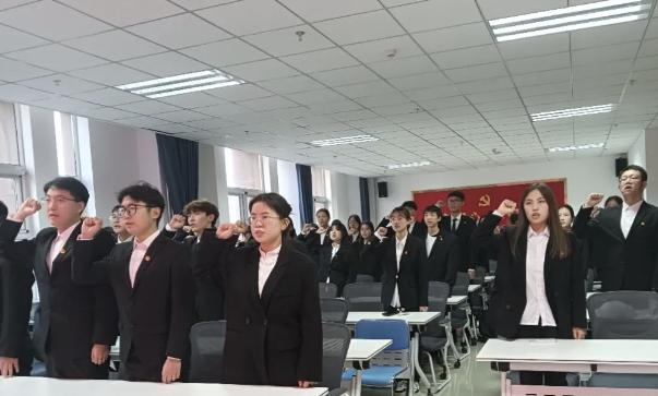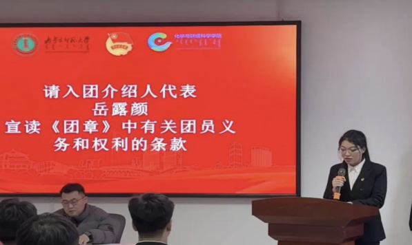 共青团委员会于理工楼B座908会议室隆重举行入团仪式。团总支副书记阿斯汉夫,学生会主席团成员李多,54名新发展团员参加本次仪式,团总支组织部成员王凤凤主持。