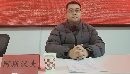大会第七项,团组织负责人阿斯汉夫老师发言。阿老师对新团员提出希望和要求,他指出共青团是党的得力助手和后备军,共青团员们肩负着重大的责任与神圣的使命。阿老师希望新团员们能怀有爱国情怀,胸怀宽广,志存高远。愿新团员们以谦虚好学之姿,展自信进取之貌,在共青团中再创人生辉煌!