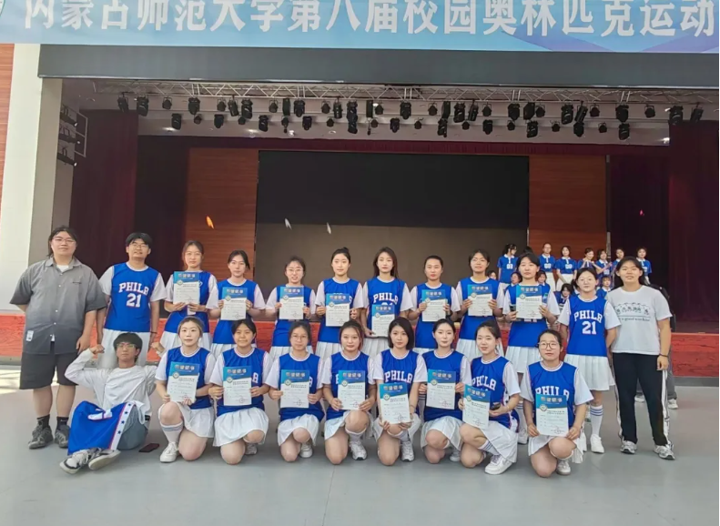 为践行“文明其精神,野蛮其体魄”的体育精神,营造“五育”并举的校园环境,增强各院集体荣誉感和凝聚力,全面展示青年学子的精神风貌,5月26日,懂球帝app 在学生事务中心二楼参加了内蒙古师范大学第八届校园奥林匹克运动会啦啦操比赛并且荣获了第八名的优秀成绩。