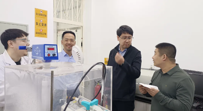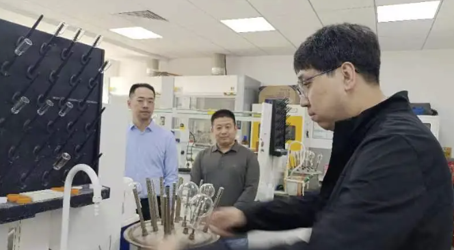 张隆、于连友实地考察了内蒙古自治区绿色催化重点实验室,王帅对实验室发展历程、取得的成果做了介绍。