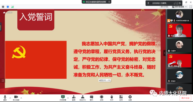 本科生党支部在线上隆重举行入党宣誓仪式。本科生党支部书记范磊、副书记阿斯汉夫、纪检委员孙光明、教师党员白赛纳及支部90名学生党员参加宣誓。