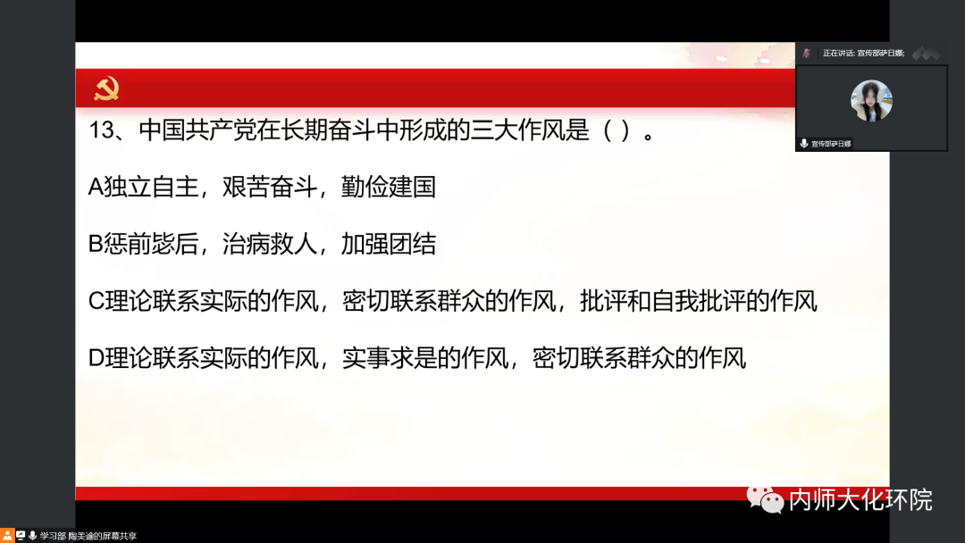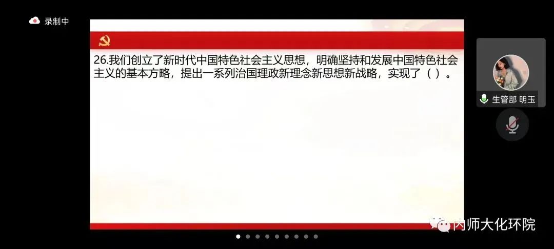 此次比赛共分为选择题、填空题、简答题三部分,同学们通过主持人分享的小程序进行抢答,当抢答按钮变成绿色抢答即开始。此环节不仅是考验选手们的知识储备量,还考验着选手们的手速和心理承受能力。同学们眼疾手快,争分夺秒,快速抢答,营造了良好的比赛氛围。