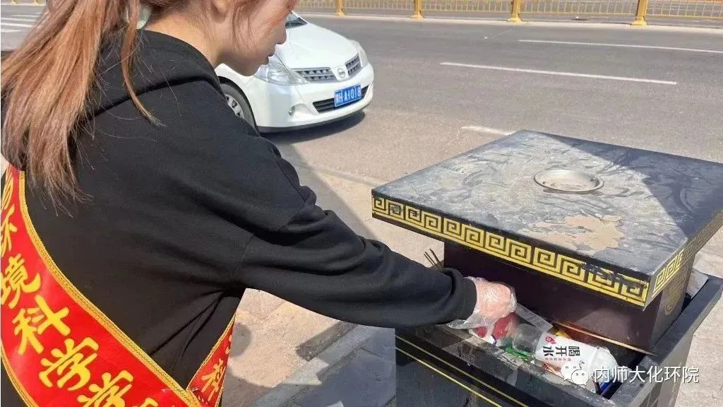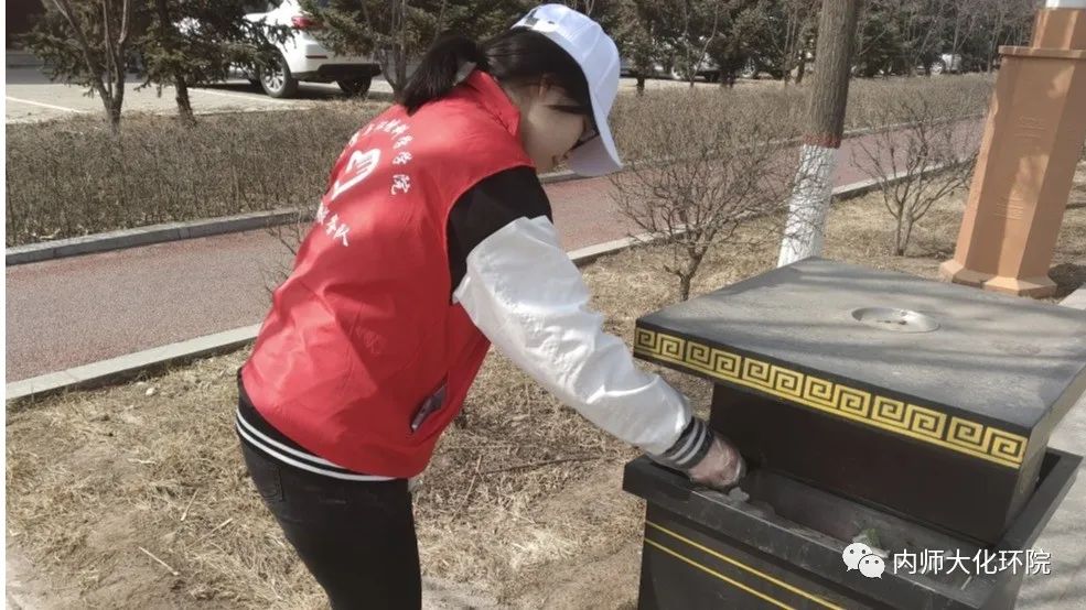 活动当天,志愿者们分为两队在盛乐校区东门外捡拾垃圾,对于绿化带中不易清扫到的“卫生死角”,同学们捡拾废纸、烟头等生活废弃物,帮助环卫工作者完成当日工作,减轻他们的工作压力,体会他们的不易。