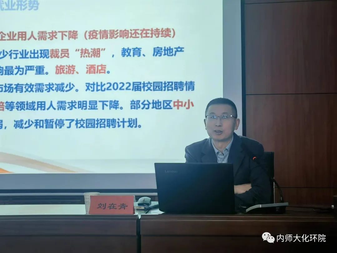 会上,刘在青、王贺成老师从当前就业形势、就业信息的获取途径、毕业生的主要去向、求职准备和就业权益保障等方面进行了解读。针对目前学生就业难、就业慢的问题、应择己所长趁早规划职业生涯和树立正确的择业就业观念等方面进行了讲解。学生工作负责人范磊老师回顾了懂球帝app