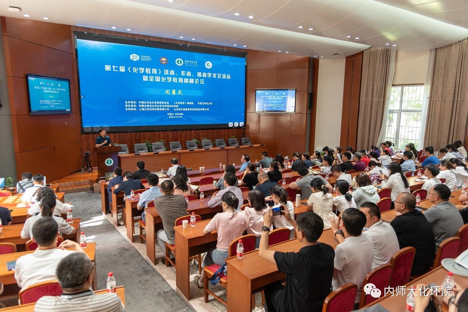 承办的中国化学会第七届《化学教育》读者、作者、编者学术交流会暨全国化学教育高峰论坛在内蒙古呼和浩特顺利召开。中科院院士厦门大学孙世刚教授、大连大学校长孟长功教授、《化学教育》主编刘正平教授、副主编王磊教授、副主编郑长龙教授、副主编施展教授、副主编姜雪峰教授、副主编杨屹教授、副主编朱玉军等出席了会议。来自全国各大高校、科研院所、中学、出版社、公司等260余名化学相关教育学者代表参加本次会议。