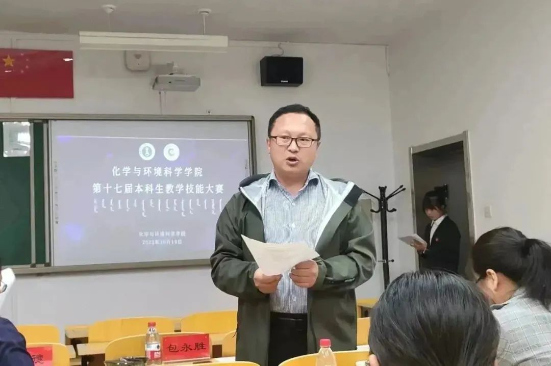 包永胜、王喜贵、陈丽萍、李玉珍、阿古拉、王奖、王海燕、王樱花、白图雅等12位老师评议比赛。竞赛共分为3组,由技能训练小组、教育实习小组、无机化学课程、有机化学课程、分析化学课程、物理化学课程推荐产生45名学生参赛。