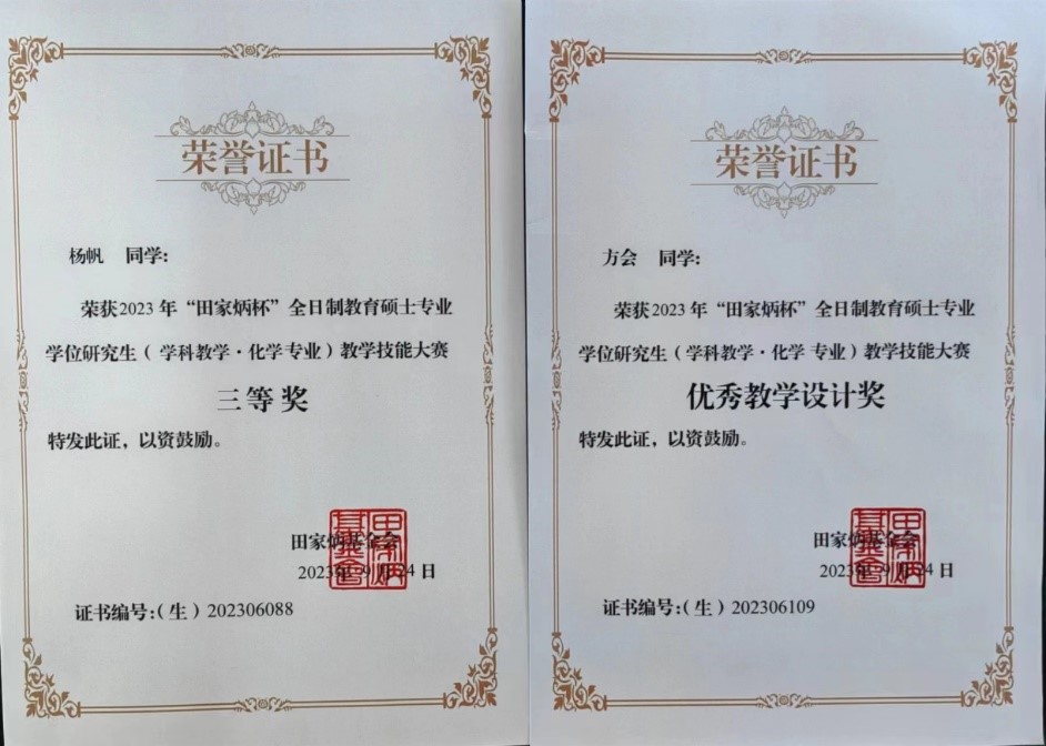 有5名2022级学科教学(化学)专业学位研究生参加初赛,其中2名进入决赛。经过决赛的激烈比拼,由李玉珍教授指导的杨帆同学喜获大赛三等奖。这是自懂球帝app
