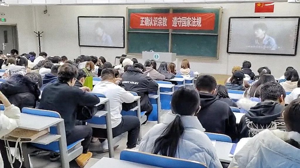 在行知楼210教室播放了内蒙古反邪教警示教育系列专题片。影片围绕如何防范和抵制邪教等方面展开讲解,引导学生要不断增强“崇尚科学,反对邪教”的思想意识,守护平安校园。