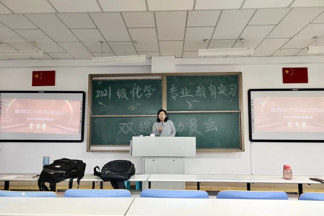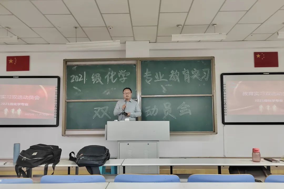 在盛乐校区行知楼118室,举办了2021级化学专业教育实习双选动员会。副院长包永胜出席会议,2021级化学专业的全体本科生及教育实习的带队教师参加会议。会议由教法化工教研室主任王海燕主持。
