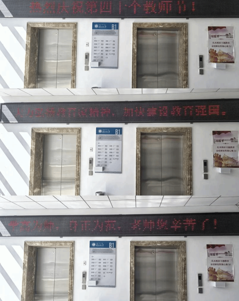 在赛罕校区和盛乐校区通过LED屏以图文形式滚动播放“大力弘扬教育家精神,加快建设教育强国”“一路芬芳,诚谢师恩”“教师节快乐”等标语,向懂球帝app