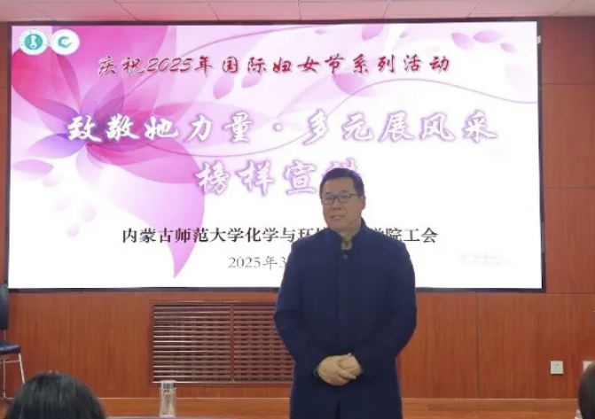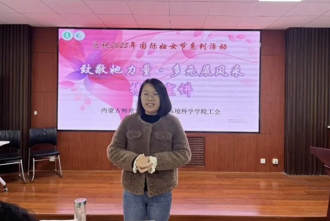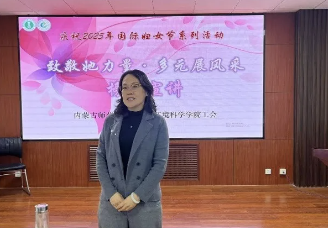 工会在赛罕校区聚贤楼213会议室举办“致敬她力量·多元展风采”庆祝2025年“三八”国际妇女节榜样宣讲会。院党委书记林海河,党委副书记、副院长范磊,副院长焦燕及40余名女教师参加活动。活动由工会主席王奖主持。