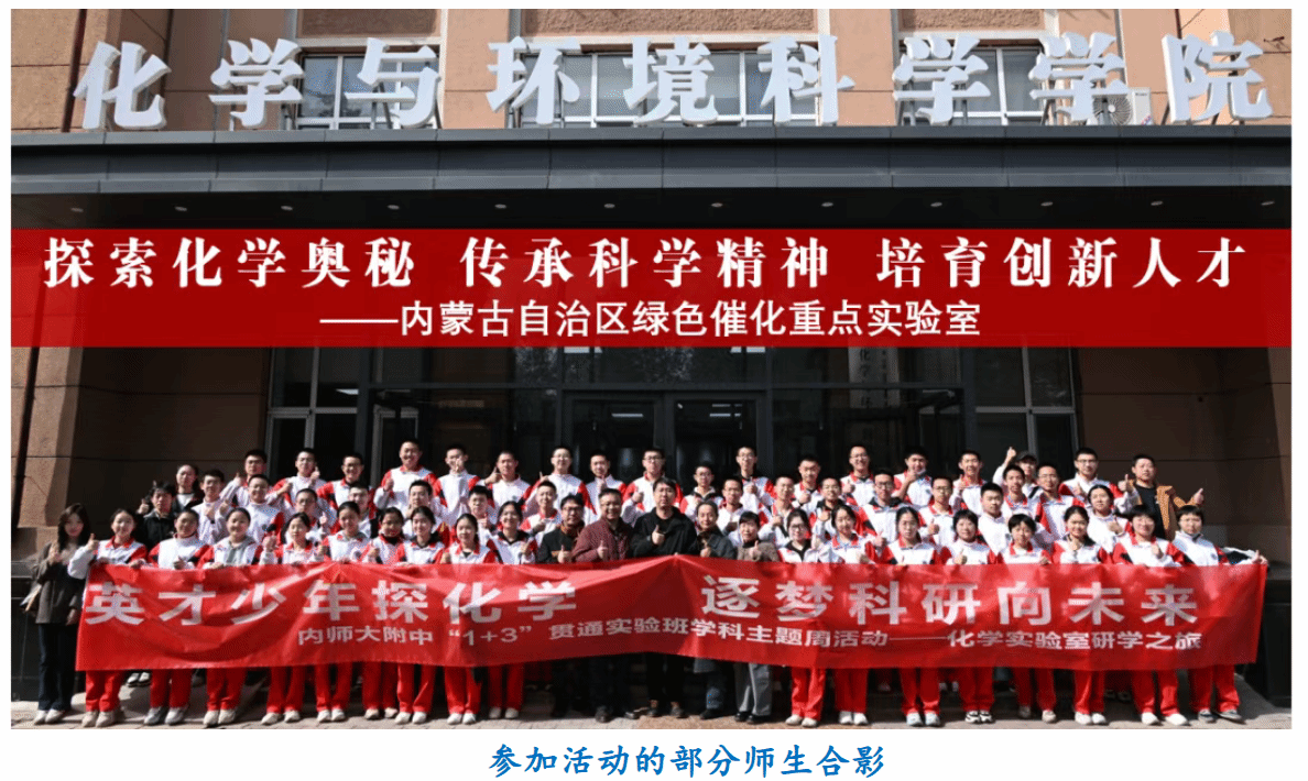,参加开启“探索化学奥秘 传承科学精神 培育创新人才”主题科普活动。此次活动由师大附中科学副校长王海燕副教授发起,内蒙古自治区绿色催化重点实验室、绿色催化党支部、内蒙古水环境安全协同创新中心联合组织。