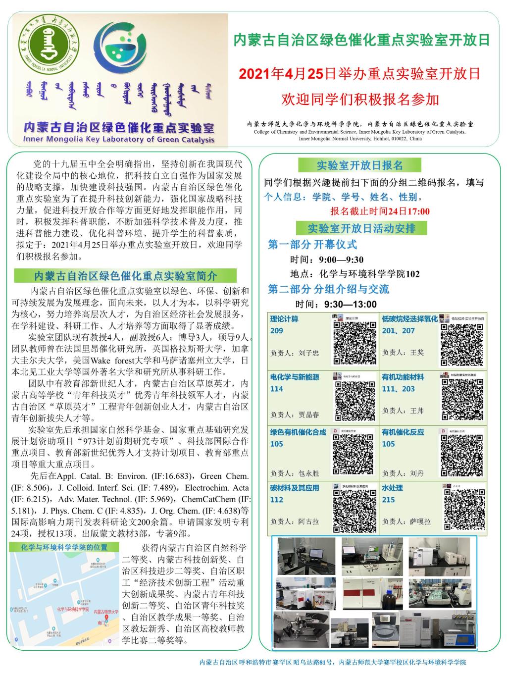内蒙古自治区绿色催化重点实验室以绿色、环保、创新和可持续发展为发展理念,面向未来,以人才为本,以科学研究为核心,努力使高层次人才培养与科学研究相统一,为自治区经济社会发展服务,在学科建设、科研工作、人才培养等各个方面都取得了显著成绩。