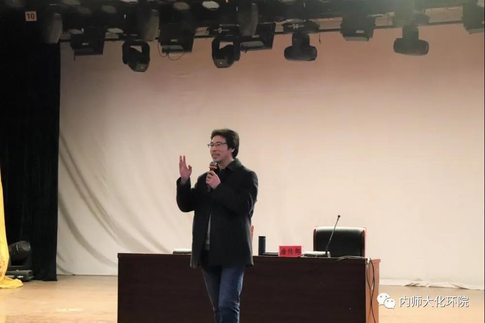 接下来,詹传郎教授从内蒙古师范大学出发,向在场的同学讲述了他对内蒙古自治区的看法和内蒙古自治区在地理和人文方面的优势。并由此展开,讲解了中华文明绵亘五千年的深层原因和历史上的先辈科学家们的动人事迹。据此鼓励同学们了解中华历史,学习先辈精神,培养优良品德,为中国的未来做出自己的贡献。
