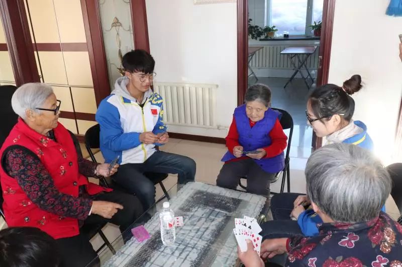 老师和同学们希望在力所能及的范围内给老人们带来更多的快乐和温暖。大家怀着忐忑的心情走进了老人们所在的房间,老人们看到我们这些陌生的面孔也有些许的拘谨。在工作人员的介绍下,志愿者们与老人们渐渐熟悉了起来。老吾老以及人之老,我们亲近的与老人们话家常,逗老人们开心,并且细心地帮助老人们打扫房间卫生、晾晒被褥,推着坐轮椅的老人在公寓附近散心……不知不觉中,天色渐渐暗下来,本次的实践活动接近了尾声,志愿者们向老人们依依不舍的招手,天下没有不散的筵席,相信怀有感恩之心的志愿者们一定还会再次来看望老人们。