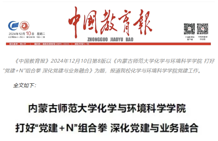 内蒙古师范大学化学与环境科学学院 打好“党建+N”组合拳 深化党建与业务融合