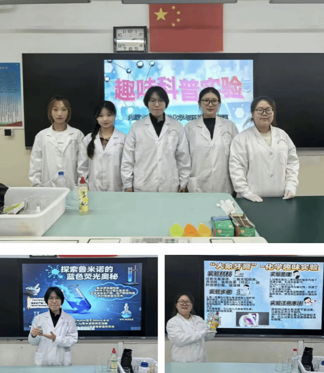 活动现场,志愿者们立足化学与环境科学专业优势,精心设计了一系列互动性强、安全性高的趣味实验:在黑暗中绽放蓝白色荧光的 “鲁米诺发光实验”,让孩子们直观感受化学发光的奇妙;“会变色的水” 实验中,溶液在试剂作用下交替呈现红、蓝、紫等色彩,引发阵阵惊叹;“变色棒棒糖” 通过简单操作实现颜色渐变,趣味十足;“浪漫樱花” 实验里,粉色 “花瓣” 在溶液中缓缓舒展,兼具科学性与观赏性;“大象牙膏” 实验中,泡沫如喷泉般喷涌而出,将现场气氛推向高潮;“特工密信” 则通过酸碱指示剂的特性,让隐藏的文字显现,激发孩子们的探索欲。