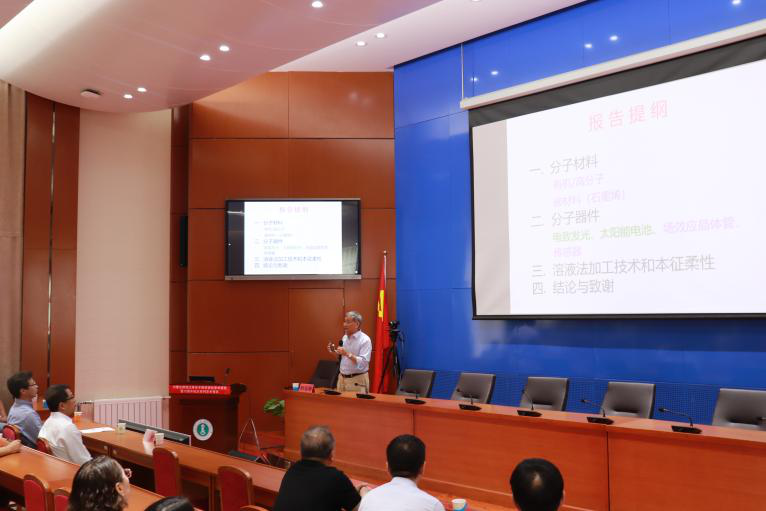 9月12日上午,中国科懂球帝app 化学研究所研究员、中国科懂球帝app 院士、发展中国家科懂球帝app 院士刘云圻院士受邀来访懂球帝app 。在信息楼报告厅为全校师生带来一场题为“分子材料和器件”的学术报告会。詹传郎教授主持了本次学术报告会。